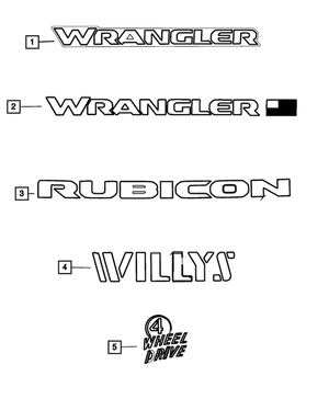 - Applications: Recon 4x4. Willys 4x4. Black And Tan 4x4. 2-Door. 392 4-Door. 4-Door. 2-Door 4x4. 4-Door 4x4. 4-Door RHD. Unlimited 85th Anniversary 4xe 4-Door. 2-Door. 4-Door. 4-Door RHD. 85th Anniversary 4-Door.